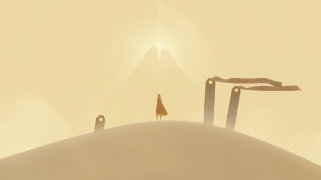 Journey es una experiencia interactiva minimalista y emocional en la que el jugador recorre un vasto desierto con el objetivo de alcanzar una montaña lejana. Sin diálogos ni texto explícito, el juego apuesta por la narrativa visual, la música y la cooperación silenciosa.