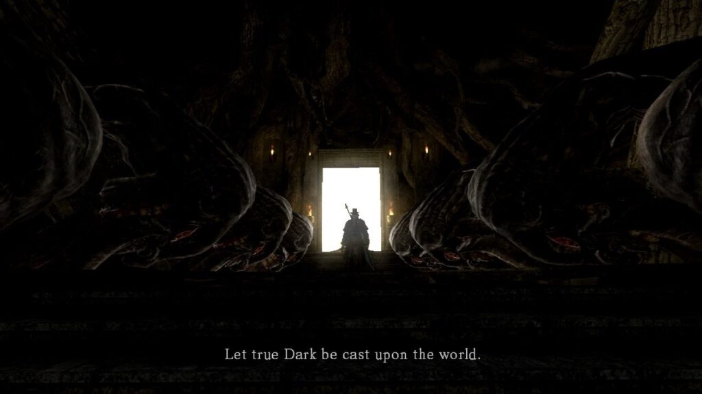 El final del viaje te lleva al Horno de la Primera Llama para enfrentarte a Gwyn, Señor de la Ceniza. Este combate es la culminación de la tristeza del juego. Gwyn ya no es el poderoso «Dios del Sol» que lanzaba rayos; se sacrificó a sí mismo quemando su cuerpo y alma para mantener la era del fuego viva unos años más. Es un cascarón vacío, un «hueco» que te ataca por instinto. La música de esta pelea no es épica, sino un piano melancólico. Al vencerlo, la decisión final recae en ti: sacrificarte como él para extender la agonizante Era del Fuego (lo que los dioses quieren) o dejar que se apague y convertirte en el Señor Oscuro, iniciando la Era de los Hombres.