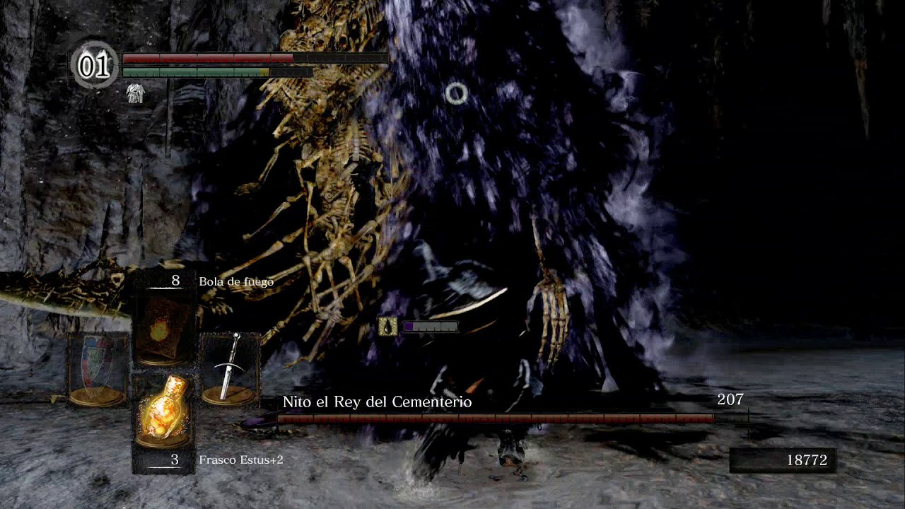 El final del viaje te lleva al Horno de la Primera Llama para enfrentarte a Gwyn, Señor de la Ceniza. Este combate es la culminación de la tristeza del juego. Gwyn ya no es el poderoso «Dios del Sol» que lanzaba rayos; se sacrificó a sí mismo quemando su cuerpo y alma para mantener la era del fuego viva unos años más. Es un cascarón vacío, un «hueco» que te ataca por instinto. La música de esta pelea no es épica, sino un piano melancólico. Al vencerlo, la decisión final recae en ti: sacrificarte como él para extender la agonizante Era del Fuego (lo que los dioses quieren) o dejar que se apague y convertirte en el Señor Oscuro, iniciando la Era de los Hombres.
