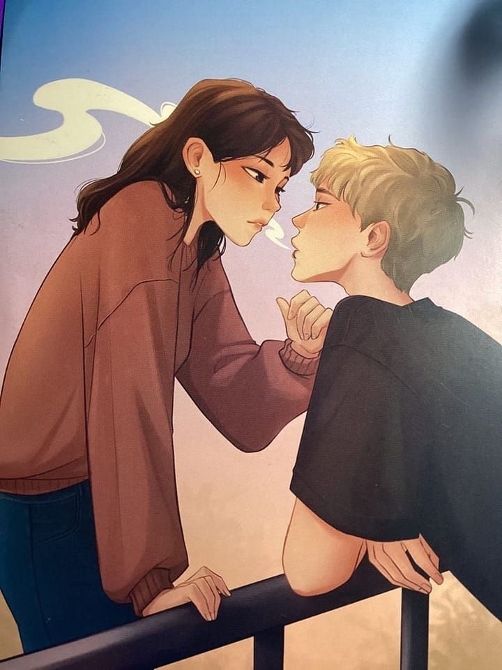 Como si cada uno fuese un cielo uno es tormenta y el otro un día soleado: él es oscuridad. Ella un rayo de sol. Y, sin embargo, juntos deciden ponerle nombre a lo que habían creado: un boulevard teñido de tonos grisáceos, celestes y azules eléctricos preparándose para la tormenta.