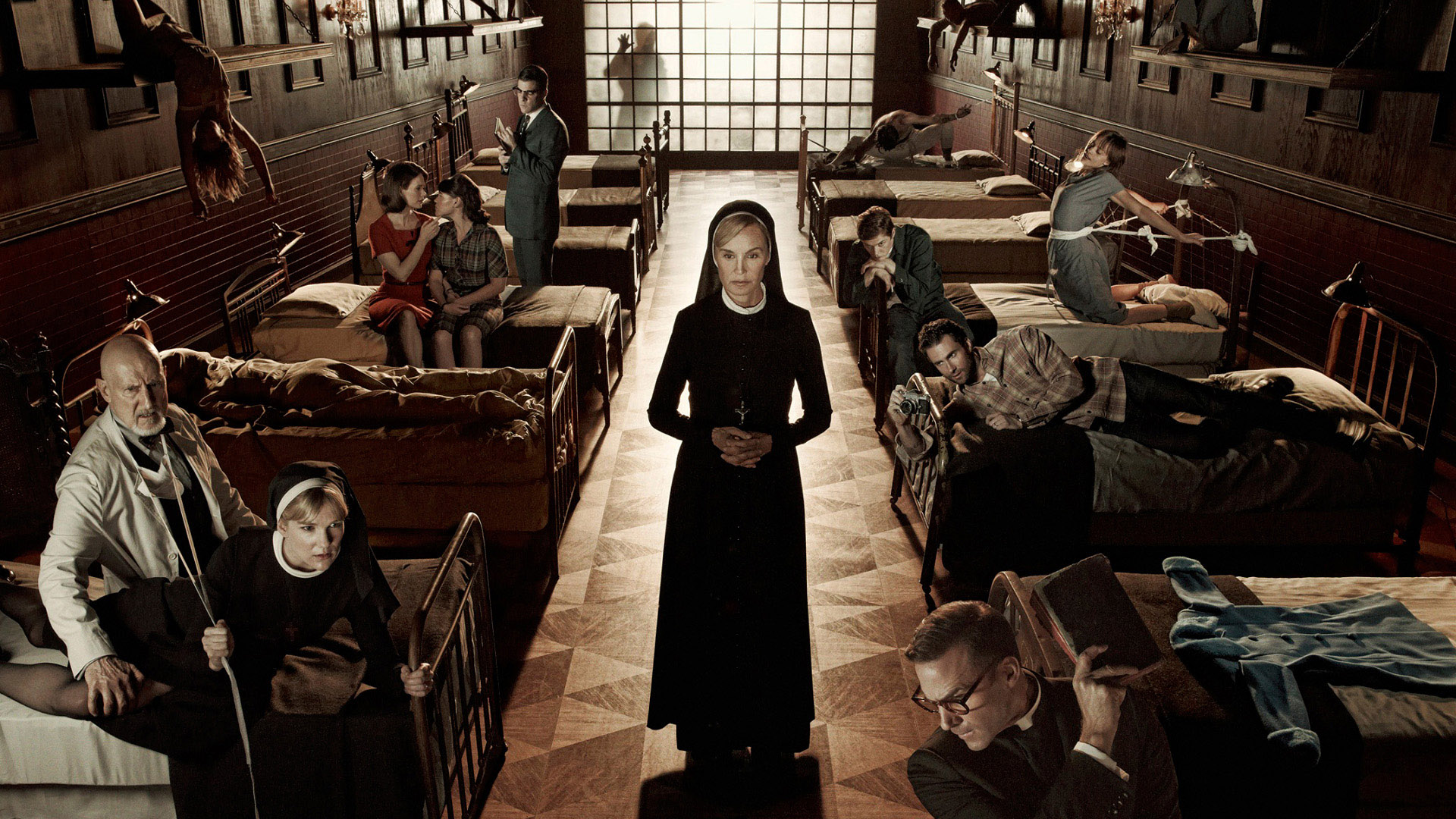 La casa que eligen los Harmon para alojarse en Los Ángeles es antigua, tétrica y cuenta con un sótano en el que no sólo habita el polvo, sino también una malvada criatura. Entre el resto de los personajes se encuentran una ama de llaves (Frances Conroy ‘A dos metros bajo tierra’), una vecina fisgona llamada Constance (Jessica Lange ‘Big Fish’), un hombre quemado que responde al nombre de Larry (Denis O’Hare ‘True Blood’) y un paciente peligroso de Ben, Tate (Evan Peters ‘Kick-Ass. Listo para machacar’), que se fija en la hija de los Harmon.