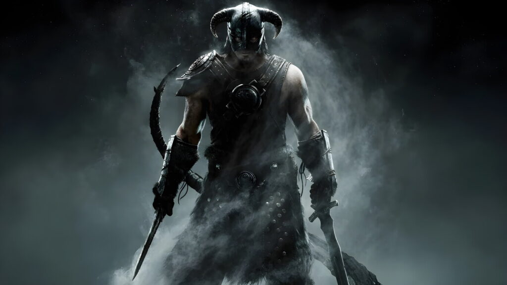 Skyrim trata sobre la historia del Sangre de Dragón (el jugador), quien debe usar sus poderes de dragón para derrotar a Alquin el Devorador de Mundos, un dragón profetizado para destruir el mundo. El juego se desarrolla en la provincia ficticia de Skyrim, 200 años después de los eventos del juego anterior, Oblivion. La trama principal se complementa con una gran cantidad de misiones secundarias, la exploración de un mundo abierto de fantasía medieval y la personalización del personaje.