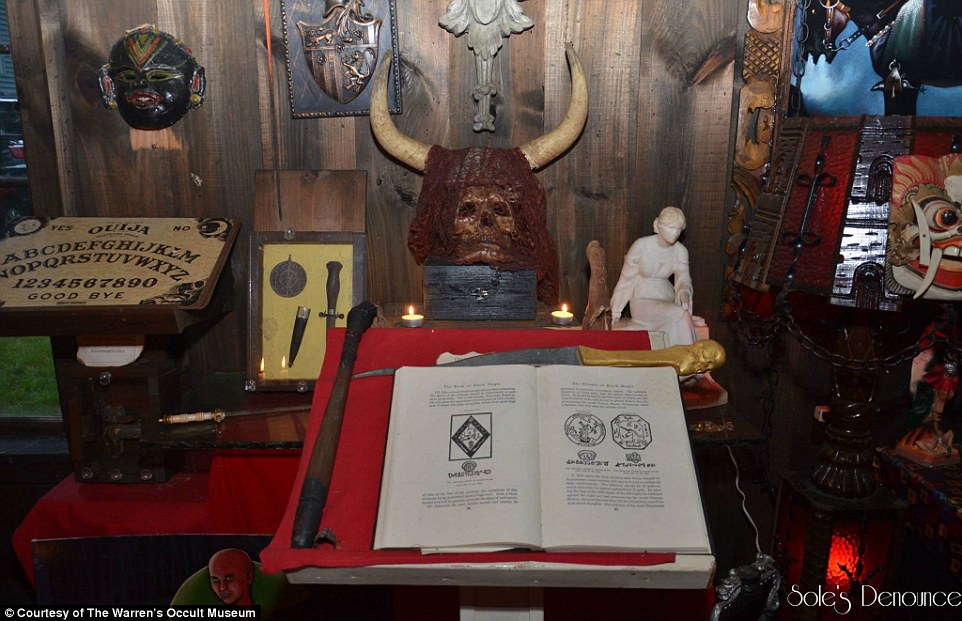 El museo de lo Oculto también esconde otros objetos fascinantes en los que se incluyen máscaras de demonios, herramientas satánicas, maldiciones de la muerte y fotografías psíquicas que cubren las paredes y los estantes.