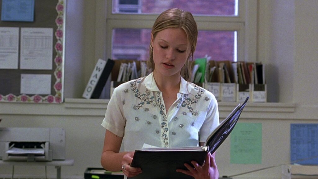Una película digna del «pavo» que tenemos una vez llegada la adolescencia. Ver al tipico malote cantar «Can’t take my eyes off you» a la protagonista a modo de conquista, podria ser el único motivo que darte para ver esta peli y sería más que suficiente, pero por si no lo fuera, esta película es el claro ejemplo de que la adolescencia esta llena de errores y aprendizajes y que no pasa nada. Mención de honor al personaje de Kat que te enseña a no conformarte y luchar por lo que crees. Tengo que finalizar confesando que esta es mi confort movie, la habré visto sin exagerar más de siete veces (y las que me faltan), es mi refugio adolescente y como romántica empedernida, a la que a veces se le olvida, un gran recordatorio de que los gestos romáticos existen.