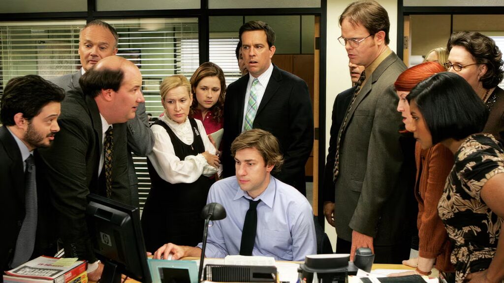 La historia se sitúa en la oficina de Dunder Mifflin, una empresa papelera en Scranton (Pensilvania), donde un equipo de trabajadores intenta sobrevivir al día a día laboral bajo la “peculiar” dirección de Michael Scott, un jefe bien intencionado pero torpemente inapropiado. La narrativa adopta el formato de falso documental, lo que permite que los personajes hablen directamente a cámara y se muestren en situaciones tanto absurdas como sorprendentemente emotivas. A lo largo de la serie, las dinámicas entre empleados —entre ellas, la relación entre Jim y Pam, o las rivalidades entre Dwight y Jim— hacen que la oficina se convierta en un lugar tan caótico como entrañable. Las rutinas de trabajo ordinarias se transforman en escenas hilarantes gracias a ocurrencias inesperadas, bromas pesadas y desastrosas iniciativas de Michael.