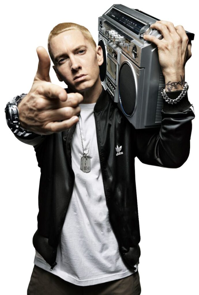 Eminem es el nombre artístico de Marshall Bruce Mathers, nacido en Kansas City el 17 de octubre de 1973. El nombre de Eminem proviene de la unión de ambas iniciales, M&M, pronunciada en inglés. Su infancia no fue fácil. Creció en ausencia del padre, quien abandonó el hogar cuando él tenía seis meses, y al cual rehusó conocer una vez alcanzada la celebridad. Vivió en varios estados con su madre, Deborah Mathers-Briggs, hasta que se instalaron en los suburbios de Detroit (Michigan), cuando él contaba doce años.