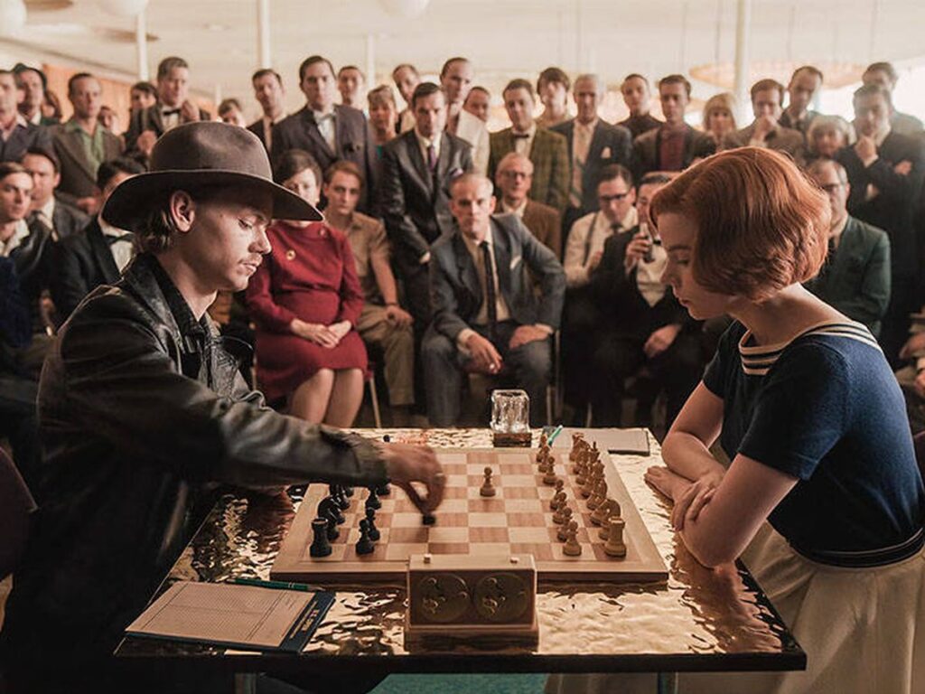 Gambito de Dama gira en torno a Beth Harmon, una tímida huérfana de 8 años de edad muy callada y completamente normal. Un día, comienza a jugar al ajedrez y la cambia la vida, ampliando sus sentidos, su pensamiento y dándola la sensación de tener control sobre su vida. Con la práctica, 8 años después, termina participando en un campeonato en Estados Unidos. Las apuestas crecen y su temor al aislamiento también mientras afina sus destrezas de jugadora profesional y, cada vez, la idea de escaparse le parece más atractiva.