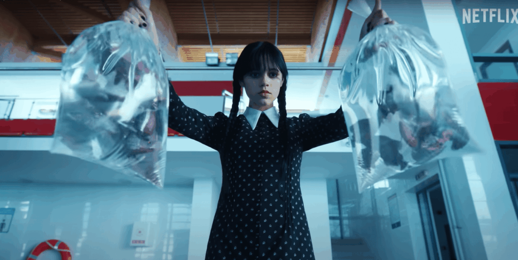 Wednesday Addams, miembro de la excéntrica y siniestra familia Addams, inicia una nueva etapa cuando sus constantes travesuras la hacen ser expulsada de su colegio. Sus padres, Morticia Addams y Gomez Addams, la envían a la Nevermore Academy, un internado para marginados, monstruos y criaturas con poderes, ubicado en el pueblo de Jericho (Vermont). Allí, Wednesday debe adaptarse a un entorno extraño e inquietante, mientras lidia con su habilidad psíquica emergente, nuevos compañeros y un oscuro misterio: una serie de asesinatos que sacude la zona y un secreto que envuelve a sus padres desde hace 25 años.